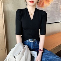 早秋必備百搭顯瘦T,V領設計顯脖頸修長顯臉小,高彈力無束縛,舒適又好看,不同身材都能輕鬆駕馭