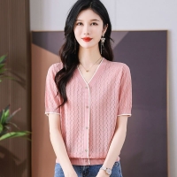 2025新款優雅限定,時尚V領假開衫短袖,V領修飾頸部顯臉小,彎腰不走光,時尚減齡,寬鬆遮胯顯瘦又顯白,高彈柔軟透氣抗皺,加長衣襬抬手不露肚子